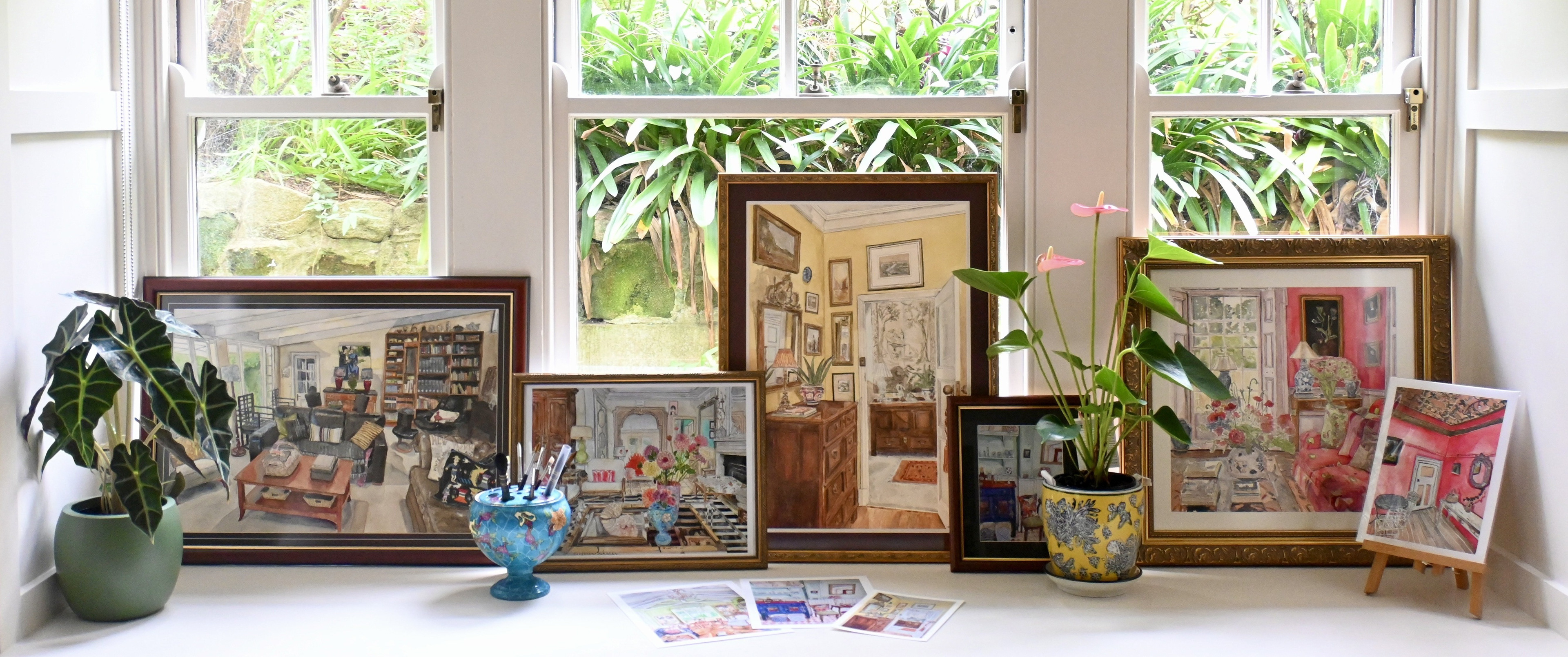 I specialise in painting interiors — capturing the personality, light, and feeling of the spaces you love most. Each painting is carefully hand-painted in quality watercolours on archival paper.